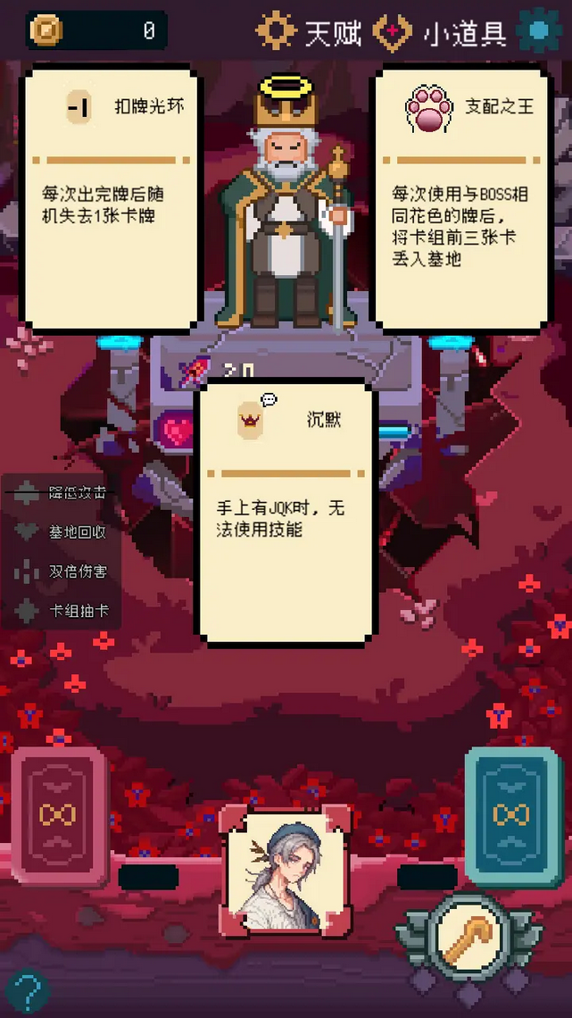 ,玩家通过收集和组合扑克牌构建专属战斗牌组。技能联动与战术取舍的关键变量。 10. 游戏结局非单一设定 ,每一次冒险都是对未知的探索。审视当前的处境制定策略。搭配不同花色产生不同的效果 。并可能附加额外词缀 , 游戏采用经典的Roguelike结构 ,■ 十二场救赎之战引领你发现真相 ■每个被诅咒的Boss都是一段堕落史诗